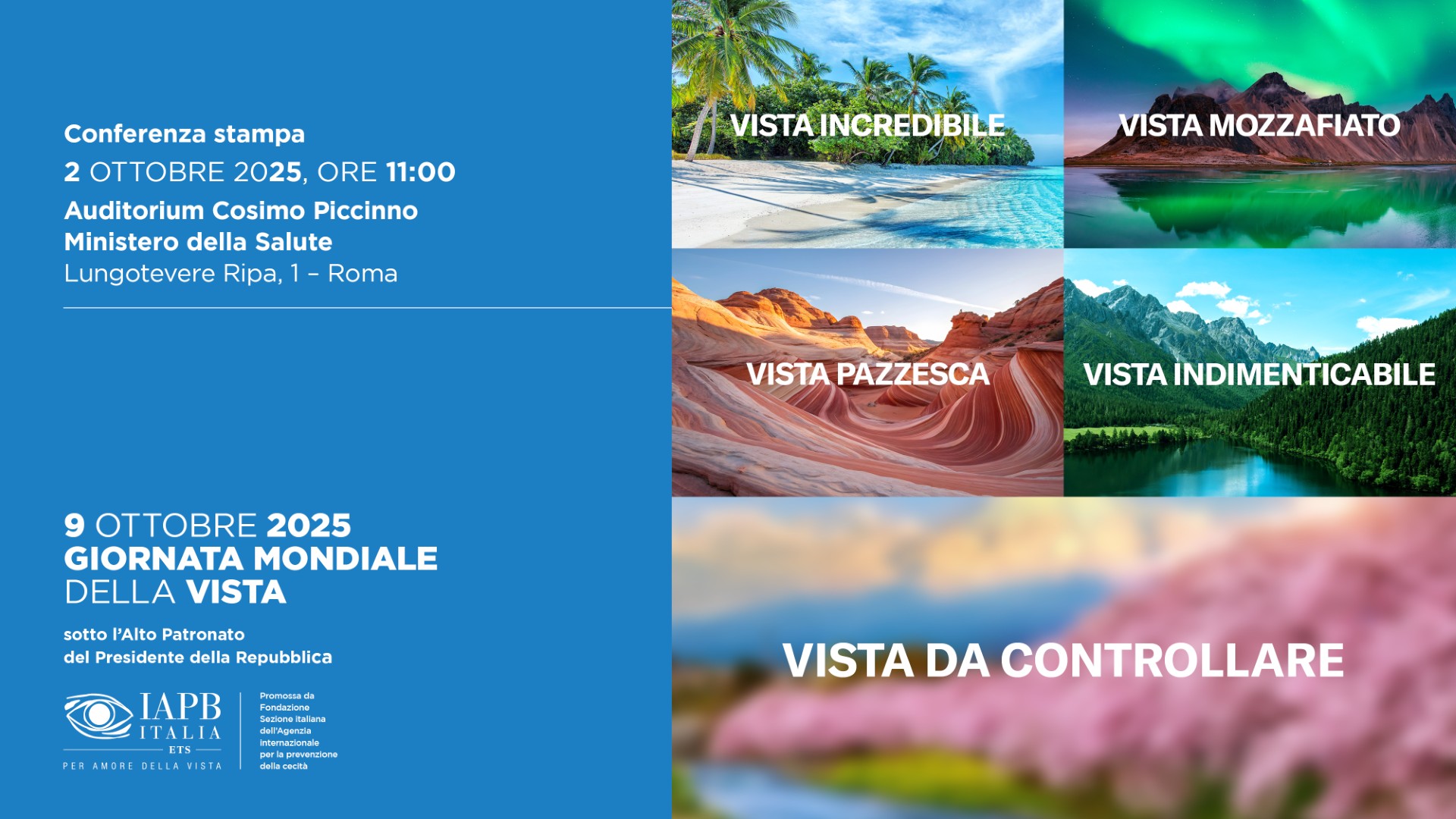 Preceduta quest’anno da una conferenza stampa al Ministero della Salute il 2 ottobre, organizzata da Fondazione IAPB Italia ETS – l’Agenzia Internazionale per la Prevenzione della Cecità alla presenza del ministro Orazio Schillaci, la Giornata Mondiale della Vista celebrata il 9 ottobre 2025 e che gode dell’Alto Patronato del Presidente della Repubblica, rappresenta da anni un’azione di advocacy e promozione per la prevenzione, la cura e la riabilitazione della vista. In breve, il messaggio da far passare è: “Sottoponiti a visite oculistiche con regolarità perché ci sono malattie della vista che non hanno sintomi nelle fasi iniziali. E quando si manifestano appieno, è troppo tardi per recuperare la vista perduta”.
