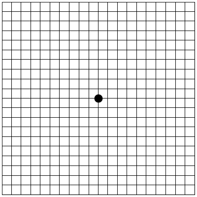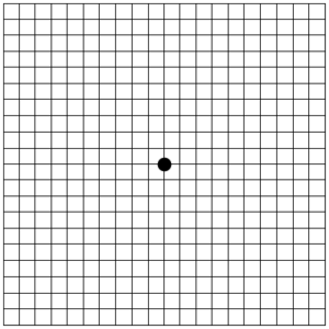 Un esame molto facile da eseguire ed utilissimo per monitorare nel tempo l’evoluzione della patologia è il reticolo di Amsler (una griglia a quadretti con un punto centrale), che consente di riconoscere distorsioni o zone cieche centrali.Uno dei sintomi dellamalattia è, infatti, una distorsione delle linee rette (righe di un quaderno, linee formate dalle mattonelle del pavimento) in prossimità del centro del campo visivo. In presenza di tali alterazioni visive, è importante sottoporsi al più presto ad un controllo medico oculistico per una diagnosi precisa.